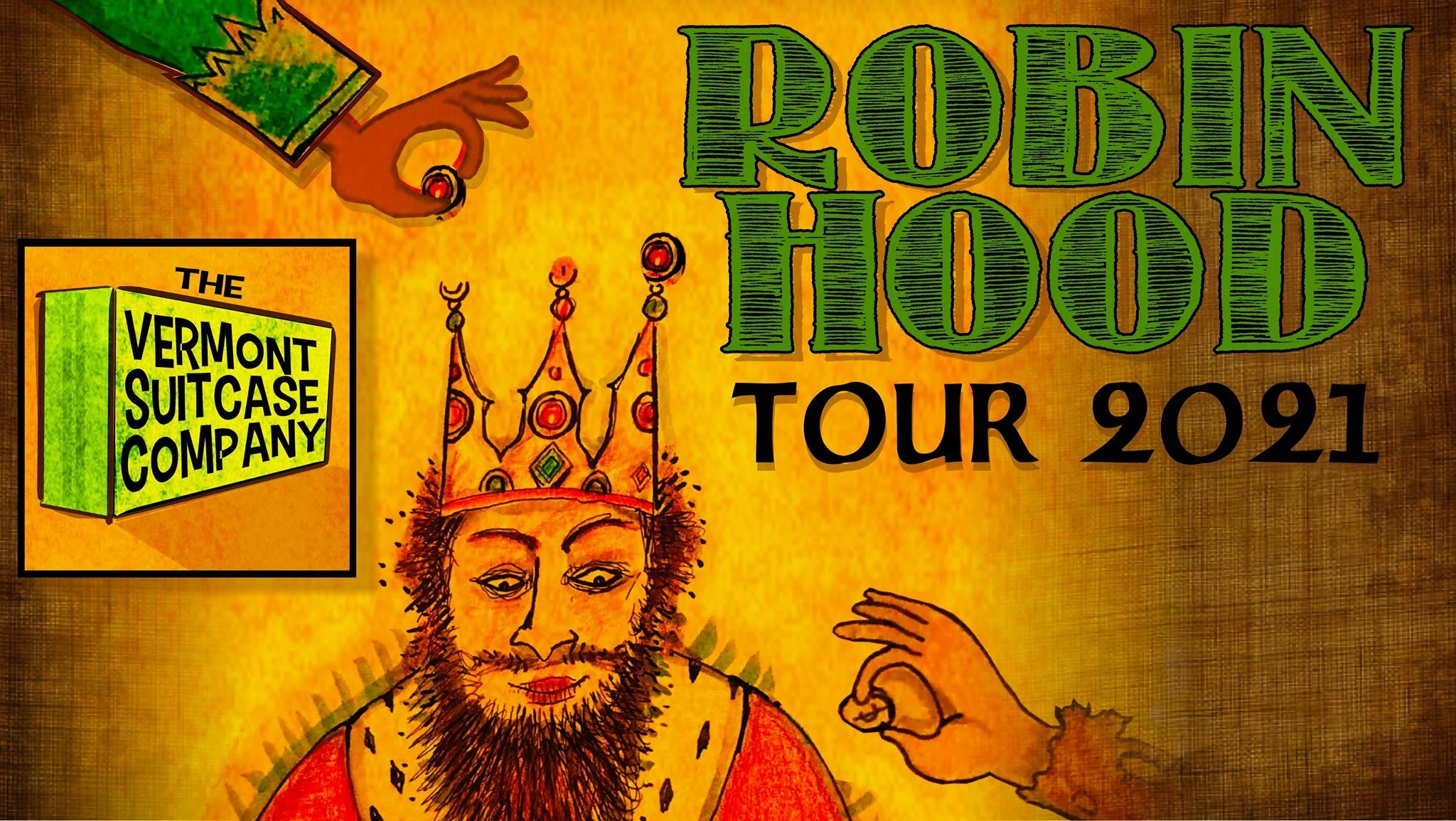 Vermont Suitcase Company is back! Eight actors and seven (all-new) puppets will be staging our own raucous, rowdy, relevant rendition of Robin Hood! In outdoor venues all around Vermont - from parks on Lake Champlain, to tents on the lawns of our beloved local theaters - we will be celebrating a merrymaking renaissance of our brave little state.